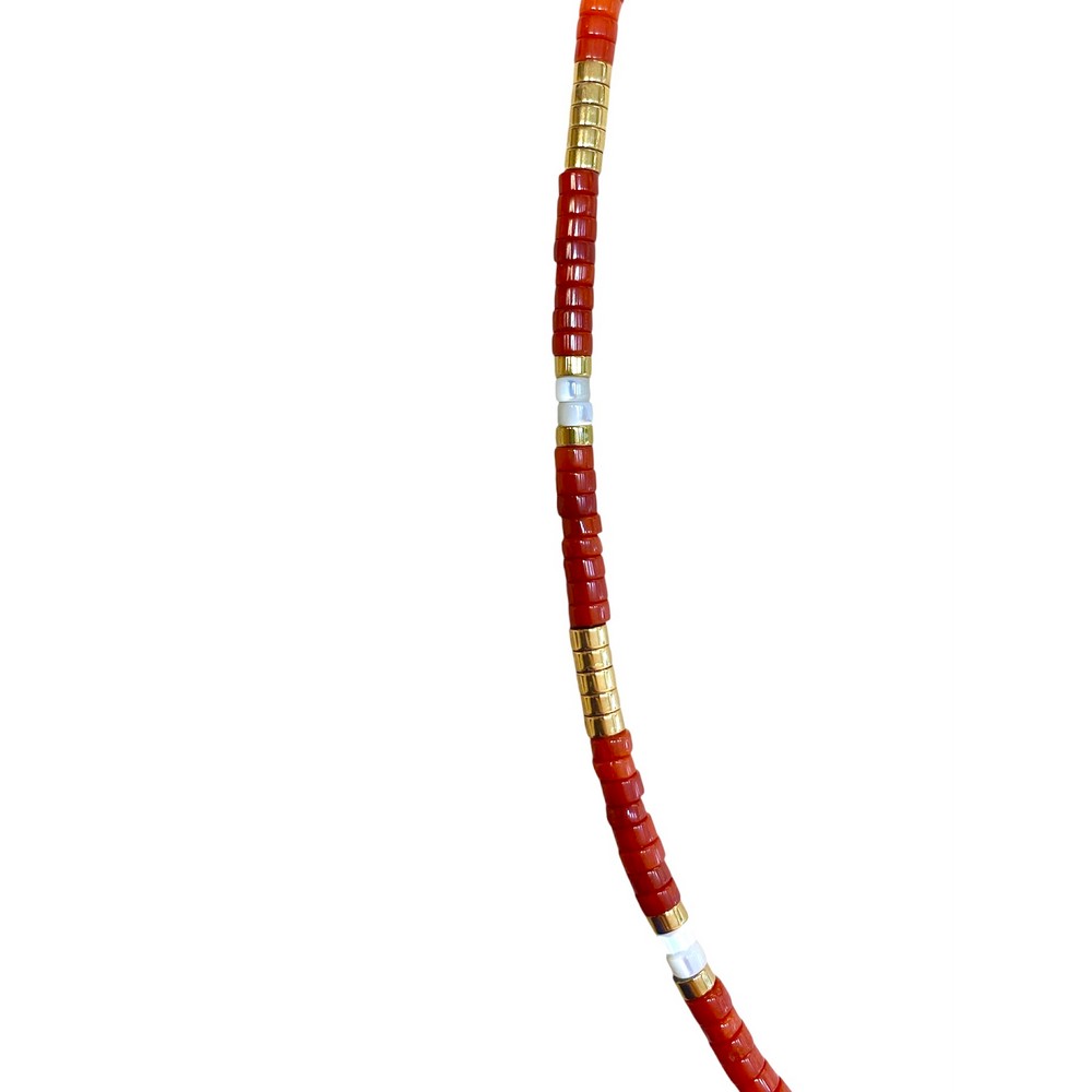 κολιέ με πέτρες από κοράλι και πέρλα , στοιχεία και κούμπωμα από επιχρυσωμένο(18Κ)ασήμι 925.